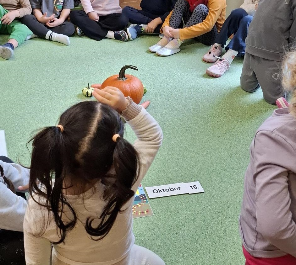 Im Morgenkreis haben wir mit den Kindern darüber gesprochen, warum wir Erntedank feiern und was es bedeutet, dankbar zu sein für das, was uns die Natur schenkt.