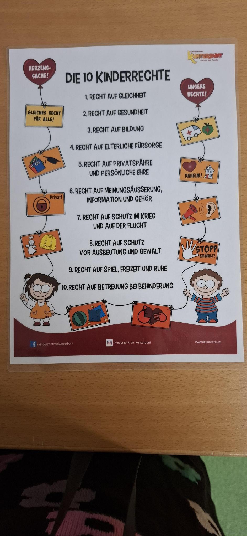 Am 20. September war der Weltkindertag und am 20. November steht der Tag der Kinderrechte an. In der Betriebskita Mahle in Stuttgart haben wir dazu mit den Kindern über Kinderrechte gesprochen. Eine Woche lang haben wir zehn wichtige Rechte vorgestellt und gemeinsam überlegt, wo Kinder diese Rechte erleben können. Dabei haben wir auch kindgerecht erklärt, dass nicht alle Kinder auf der Welt ihre Rechte leben können: Zum Beispiel, weil sie nicht zur Schule gehen dürfen oder nicht sicher sind. Die Kinder haben sich dazu ausgetauscht und erzählt, welches Recht ihnen besonders wichtig ist.