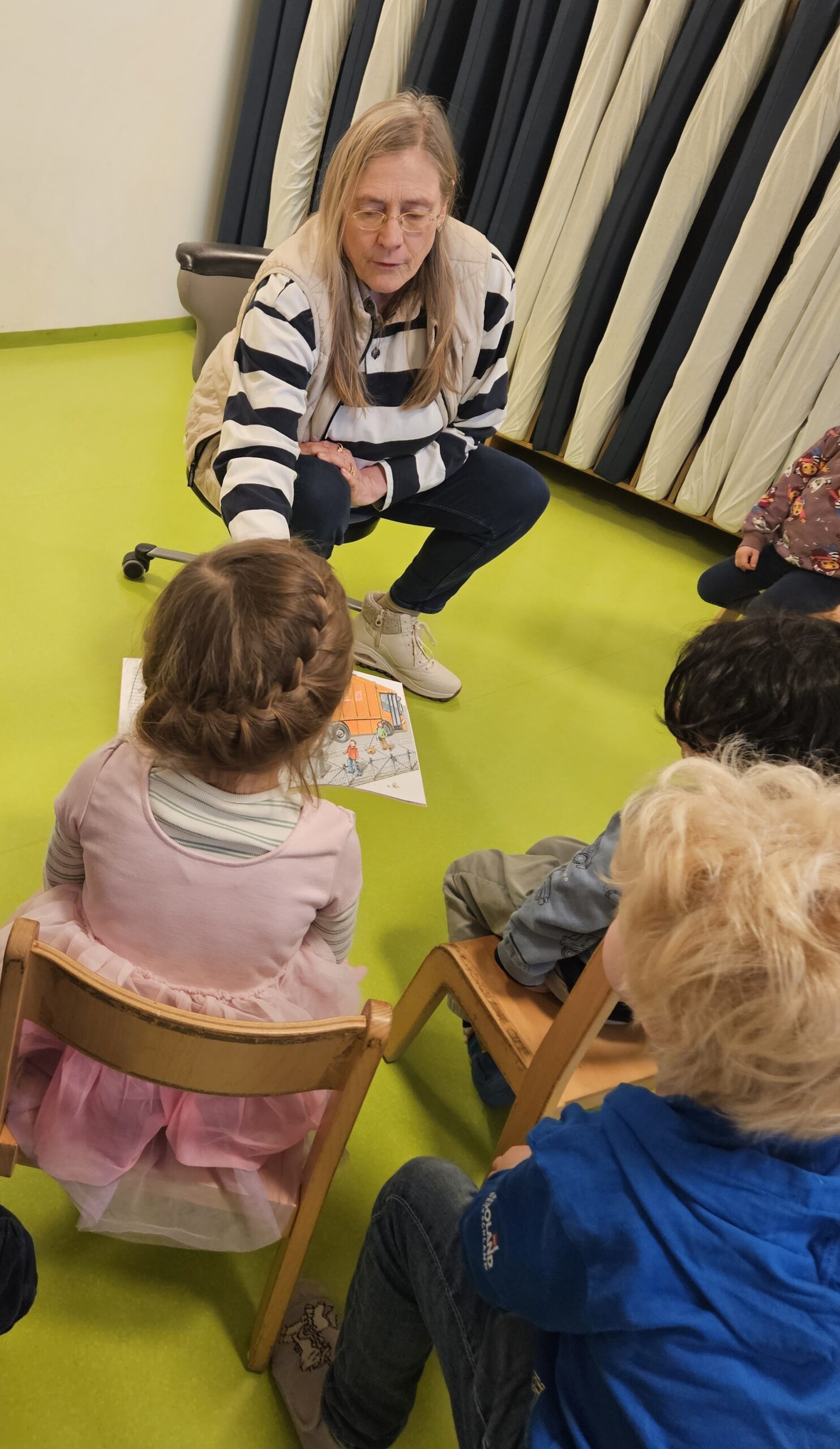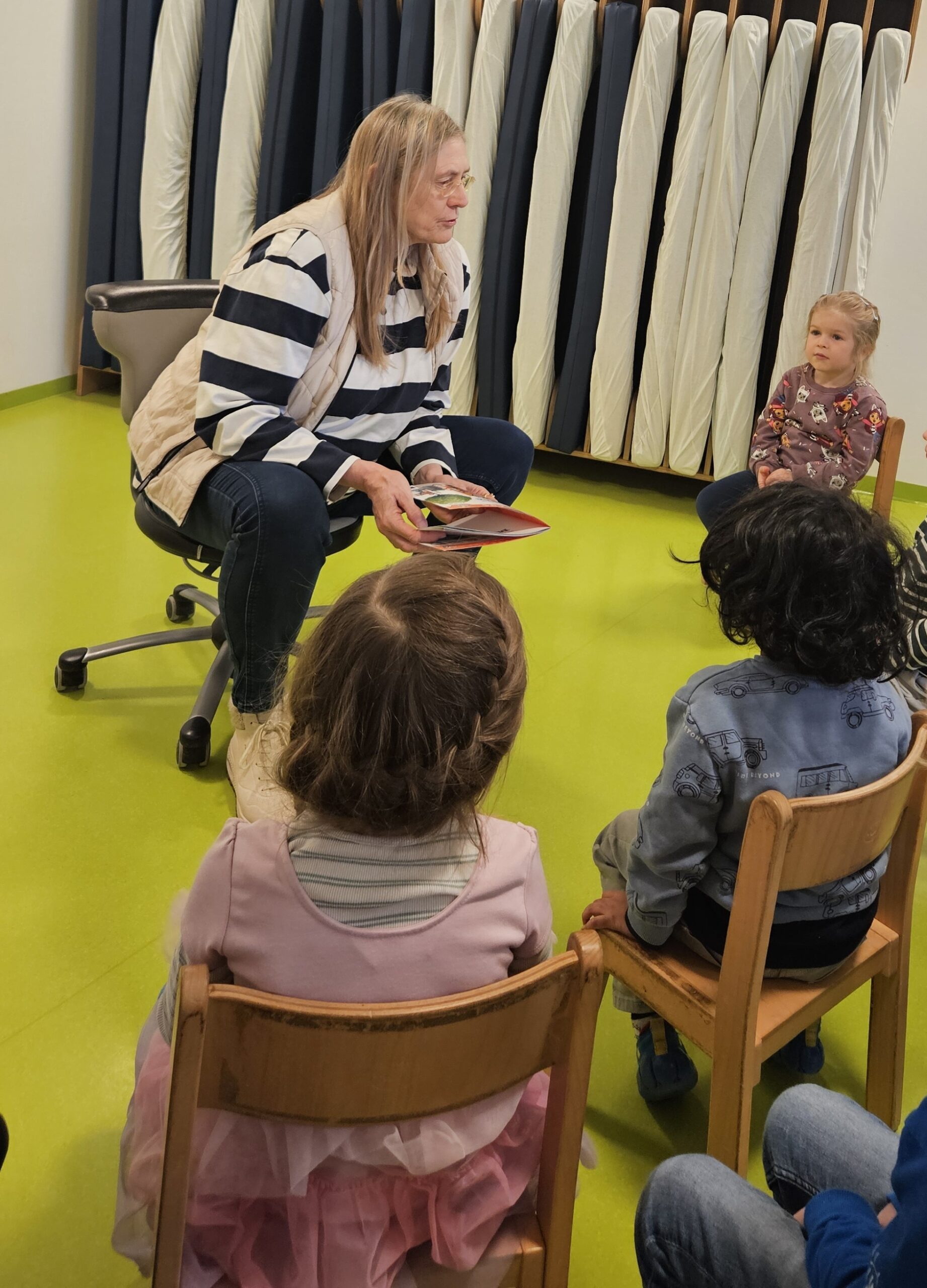 In unseren Krippengruppen durften wir Frau Marianne Schäfer vom Verein Leselernhelfer e.V. begrüßen. Sie hatte eine Auswahl spannender Bücher dabei, und so versammelten sich die Kinder und Erzieherinnen schnell um Frau Schäfer herum. Besonders spannend fanden die Kinder das Buch „Die kleine Raupe Nimmersatt“. Geduldig und liebevoll las Frau Schäfer daraus vor. Die Atmosphäre war sehr lebendig, die Kinder hörten aufmerksam zu und es entstand ein magischer Lesemoment.