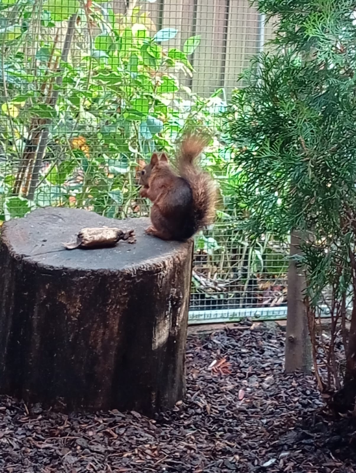 Heute durfte das Kleeblatt einen ganz besonderen Ausflug machen: Wir besuchten die Eichhörnchen-Auffangstation. Dort werden verletzte und junge Eichhörnchen liebevoll gepflegt, bis sie wieder stark genug sind, um in die Freiheit zurückzukehren. Die Kinder lauschten gespannt und hatten große Augen, während sie viel über das Leben der Eichhörnchen erfuhren – wie sie Nester bauen, was sie fressen und warum sie manchmal Hilfe benötigen. Schon im Vorfeld hatten die Kinder fleißig Bucheckern, Esskastanien und Haselnüsse gesammelt, um den Eichhörnchen etwas Gutes zu tun. So erkannten sie, dass ihr Einsatz in der Natur etwas bewirken kann. Dieses Erlebnis zeigt eindrucksvoll, wie Kinder durch direkte Begegnungen mit der Natur Verantwortung, Empathie und Achtung vor anderen Lebewesen entwickeln. Ein bedeutender Schritt auf dem Weg zu naturverbundenen, sensiblen Umgangsformen.