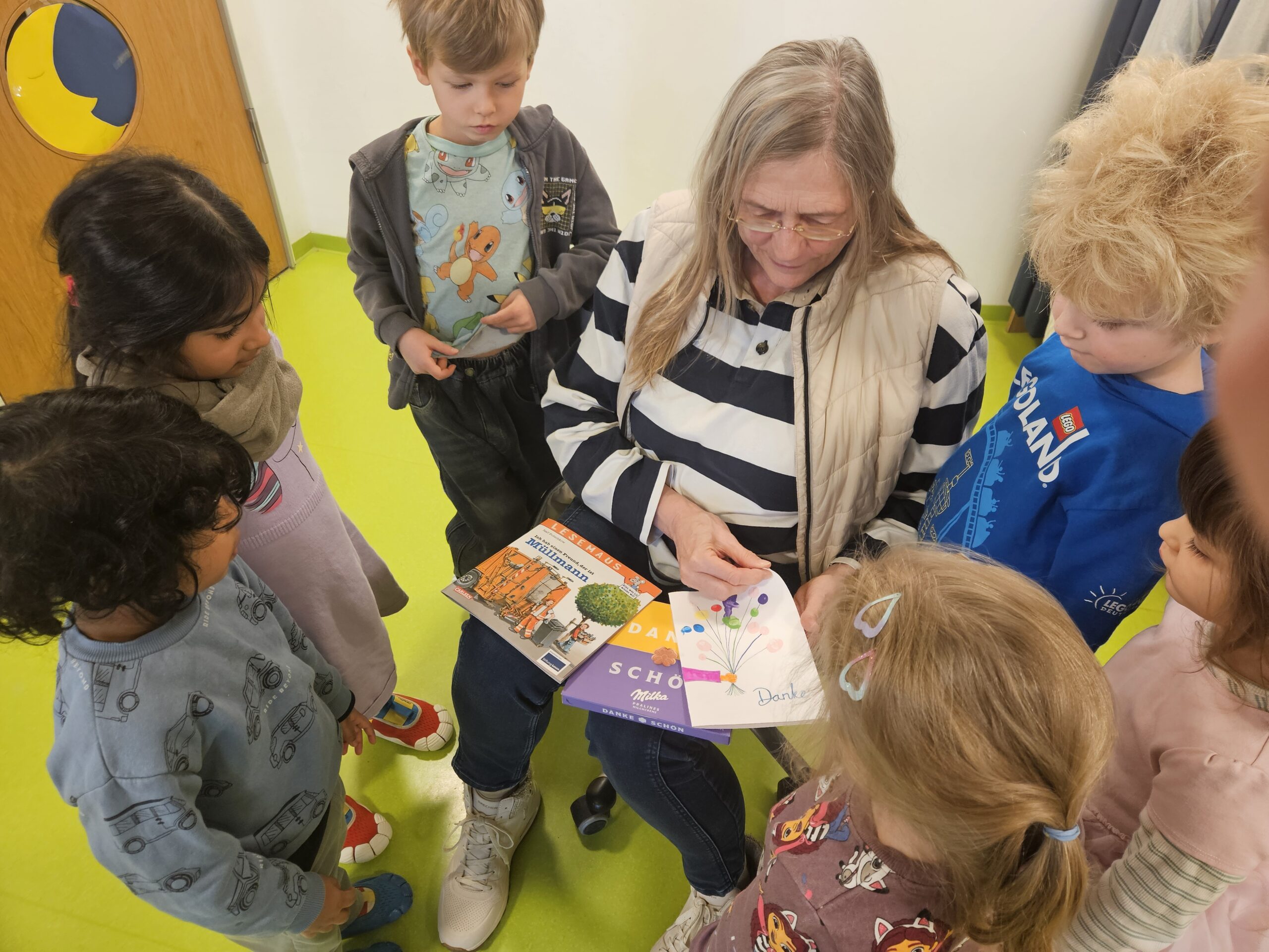 Der diesjährige Vorlesetag am 21. November 2025 in unserer Kita ,,Quantenzwerge” in Heidelberg wurde durch unsere beiden ehrenamtlichen Vorlesegäste, Frau Schäfer und Frau Ratz-Selzer, zu einem ganz besonders Erlebnis. In unseren Krippengruppen durften wir Frau Marianne Schäfer vom Verein Leselernhelfer e.V. begrüßen. Sie hatte eine Auswahl spannender Bücher dabei, und so versammelten sich die Kinder und Erzieherinnen schnell um Frau Schäfer herum. Besonders spannend fanden die Kinder das Buch „Die kleine Raupe Nimmersatt“. Geduldig und liebevoll las Frau Schäfer daraus vor. Die Atmosphäre war sehr lebendig, die Kinder hörten aufmerksam zu und es entstand ein magischer Lesemoment. Die Kindergartengruppe bekam Besuch von Frau Doris Ratz-Selzer von der Abfallwirtschaft Heidelberg. Sie las den Kindern das Buch „Ich habe einen Freund, der ist Müllmann“ vor und führte mit ihnen ein reges Gespräch über die Art der Mülltrennung. Ein paar Kinder, die nicht aus Heidelberg kommen, merkten schnell, dass ihre Mülltonnen andersfarbig sind. Der Austausch war für die Kinder und Erzieherinnen sehr interessant, und Frau Ratz-Selzer konnte die Kinder durch ihren Besuch auf ein wichtiges Thema für unsere Umwelt aufmerksam machen. Die Kinder freuten sich besonders, als sie am Ende auch ein Exemplar des Buches geschenkt bekamen. Herzlichen Dank an unsere Vorlesegäste!